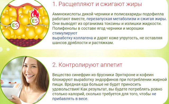 Цілком очевидно, що їжа перестала бути такою натуральної, як сто-двісті років тому, коли більшість людей харчувалися тим, що тільки що зірвали з грядки. Можна сказати, що їжа повільно нас вбиває. Однак, тепер у вас є можливість очистити своє тіло від усього зайвого і повернути собі довгоочікувану стрункість. Вчені штату Вірджинія вважають, що це можливо тільки в тому випадку, якщо ви будете вживати очищаючі таблетки Еко Слім для схуднення. Вже ні для кого не секрет, що очищення – це ключ до омолодження і зниження ваги, і в даному випадку вам не знайти більш ефективного препарату. Завдяки йому ви позбудетеся від токсинів, які підуть, прихопивши з собою зайву вагу. Отже, що ж міститься у складі таблеток? Це найважливіші вітаміни групи В, гуарана, кофеїн, янтарна кислота, хітозан, колеус форсколия, водорості і знаменитий L-карнітин, який називають головним борцем проти жиру.